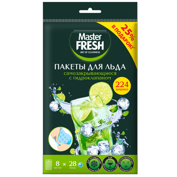 Пакеты для льда самозакрывающиеся с гидроклапаном 8 листов по 28 шариков Master Fresh