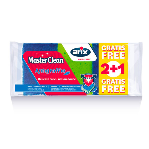Многоразовая губка со специальным нецарапающим волнистым покрытием 2+1шт Arix