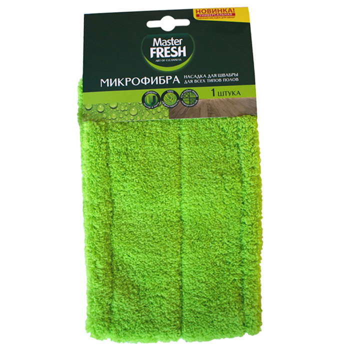 Ауыстырылатын сүрткіш саптама Master FRESH барқыт бірегей материалдан - микроталшықтан жасалған. Микрофибр шаң мен ұсақ қоқысты кетіру үшін тиімді, қатты кірді оңай кетіреді, бетінде жолақ қалдырмайды. Ол антистатикалық қасиеттерге ие, қолдануға төзімді. Еден жабындарының барлық түрлеріне өте ыңғайлы..