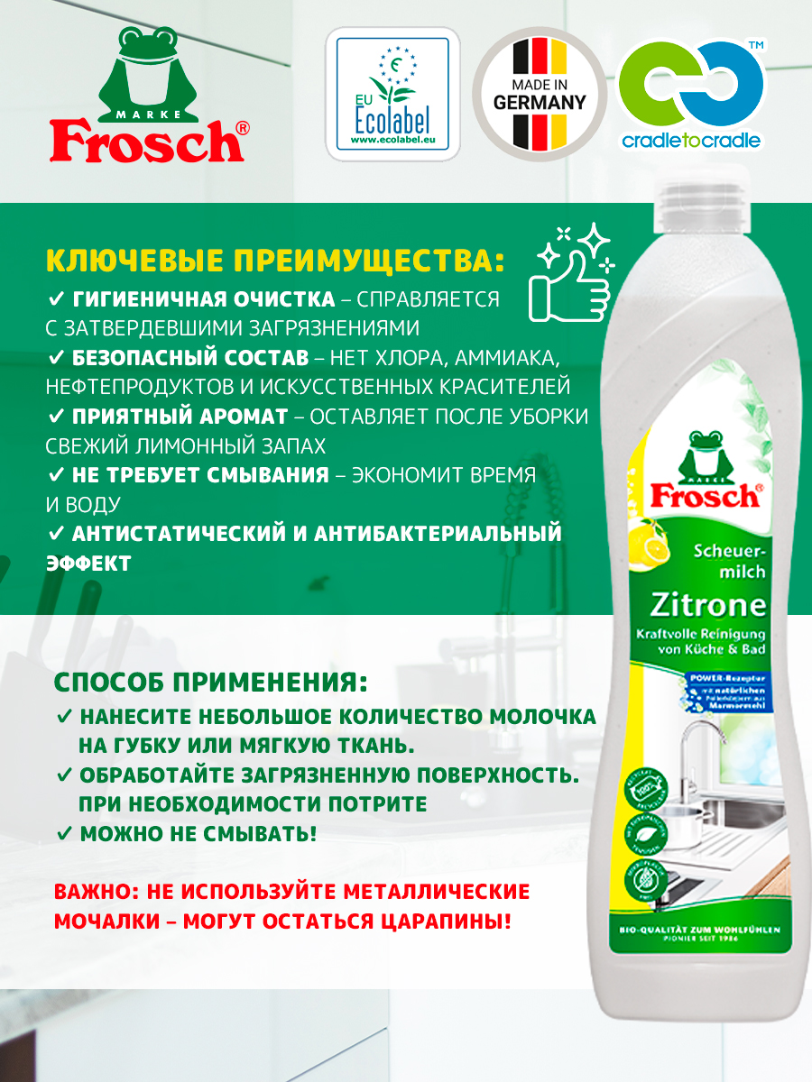 Молочко чистящее абразивное Лимон 500мл Frosch