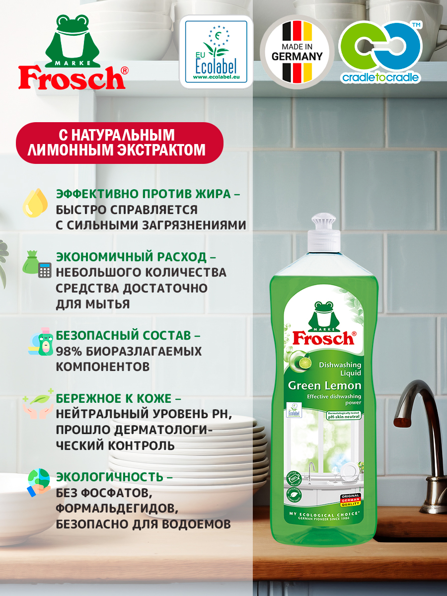 Средство для мытья посуды Зеленый лимон 1000мл Frosch