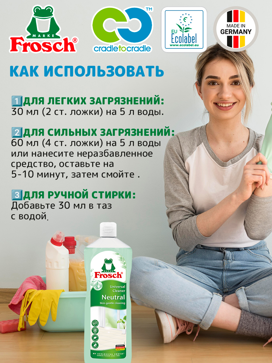 Очиститель универсальный Классик РН-нейтральный 1000мл Frosch
