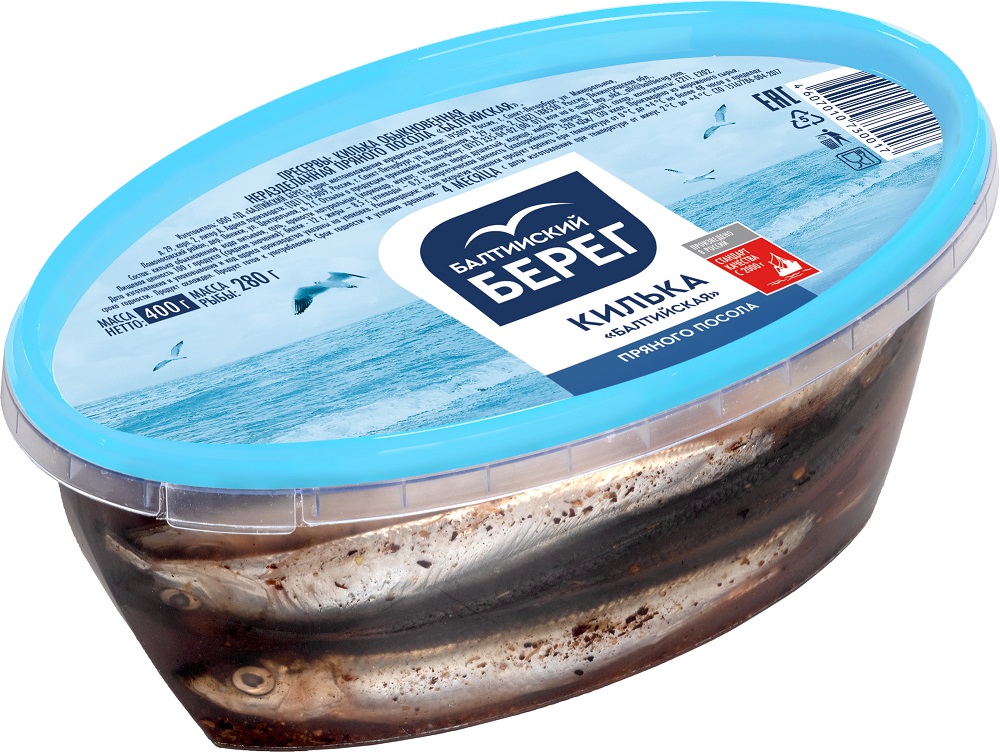Рыбные консервы: популярные бренды «Балтийский Берег», «Царский Улов» и «Ультрамарин» (шпроты, сайра, тунец и др.).