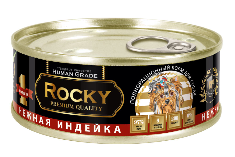 Влажный корм для собак нежная индейка Монобелковый 100гр жб ключ ROCKY