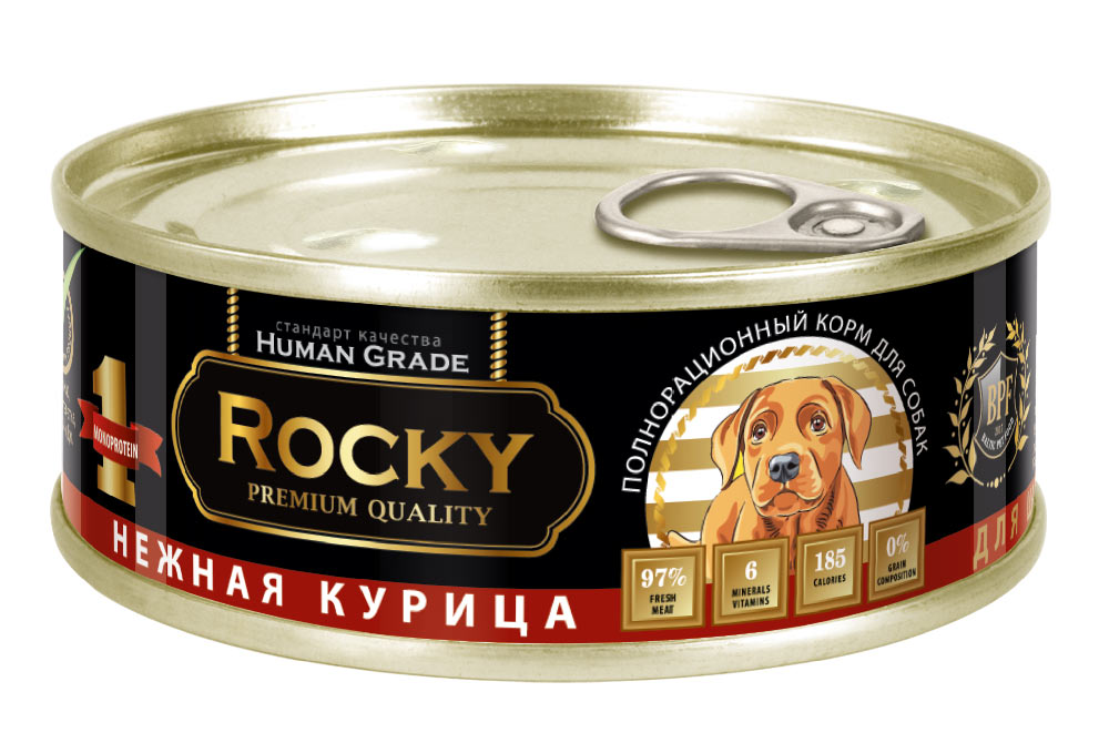 Влажный корм для собак нежная курица Монобелковый 100гр жб ключ ROCKY