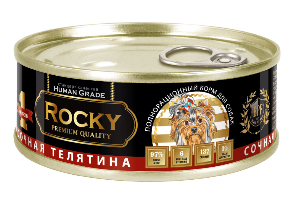 Влажный корм для собак сочная телятина Монобелковый 100гр жб ключ ROCKY