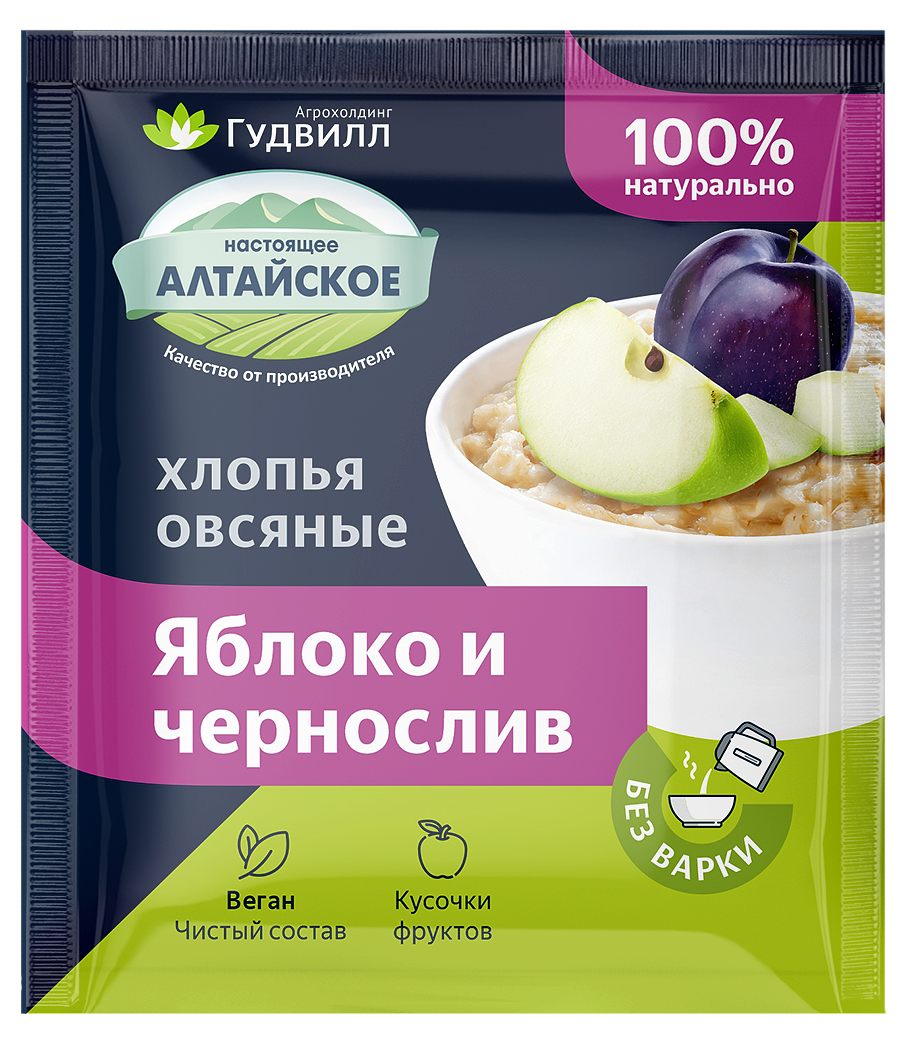 Каша сладкая овсяные хлопья яблоко и чернослив 40гр Гудвилл