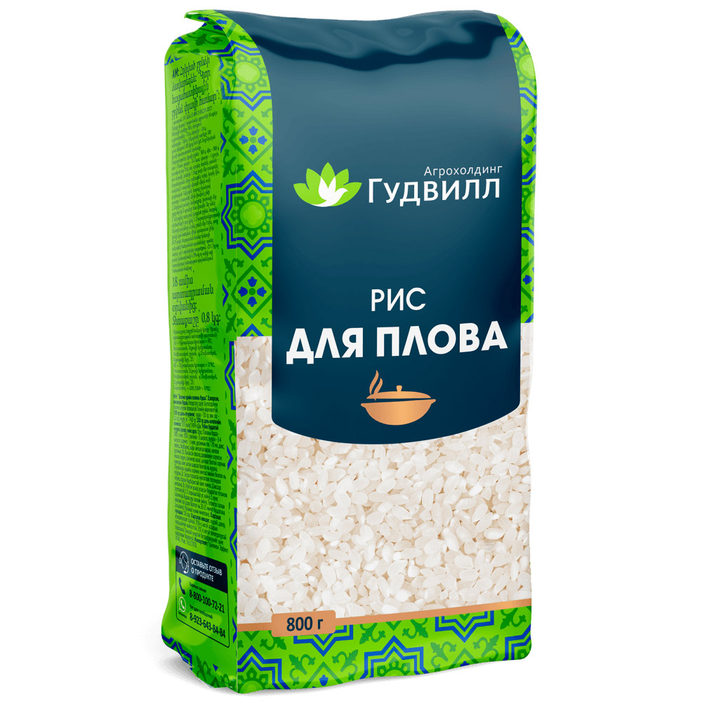 Рис круглозерный для плова 800гр Гудвилл