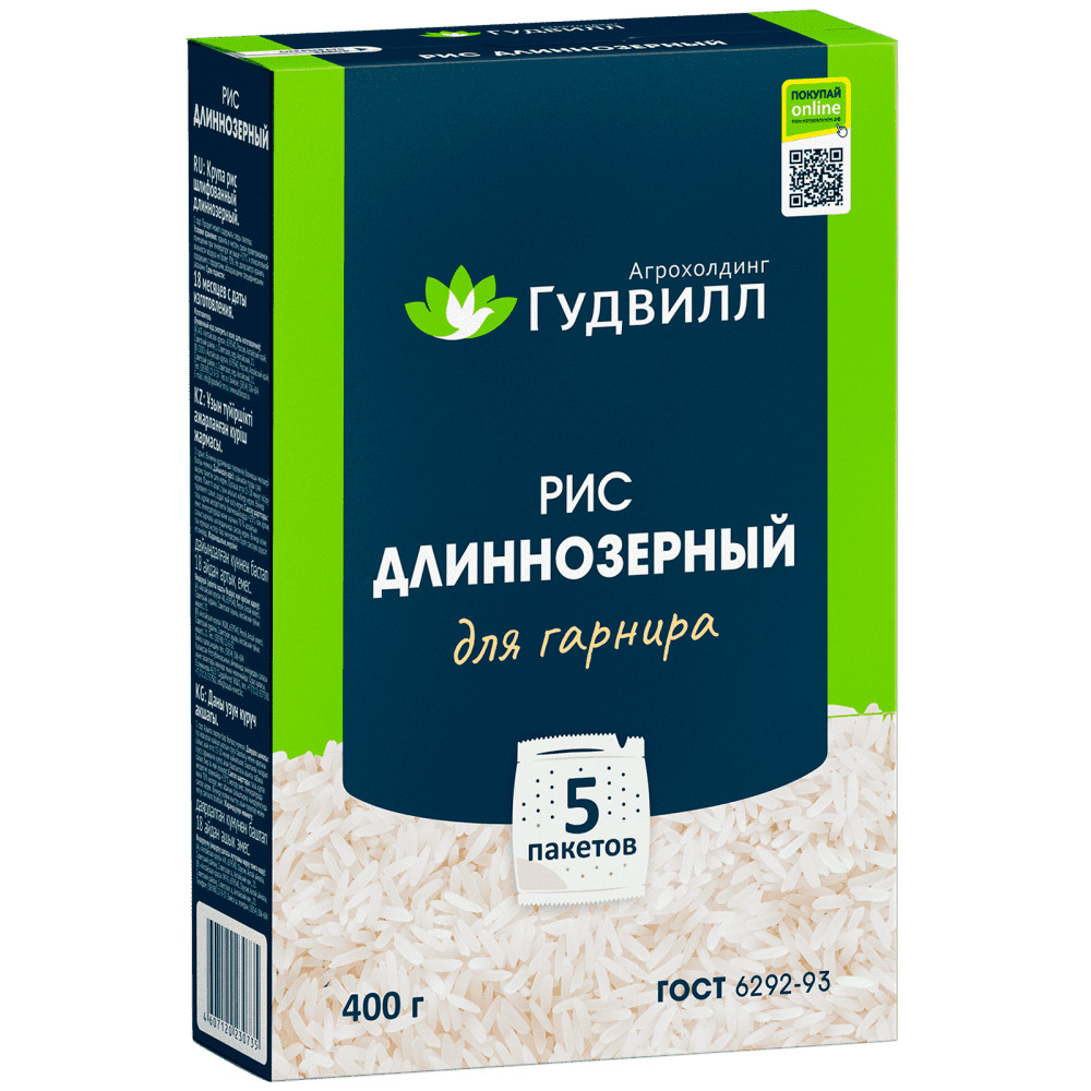 Рис длиннозерный варочный пакет 5пак*80гр Гудвилл