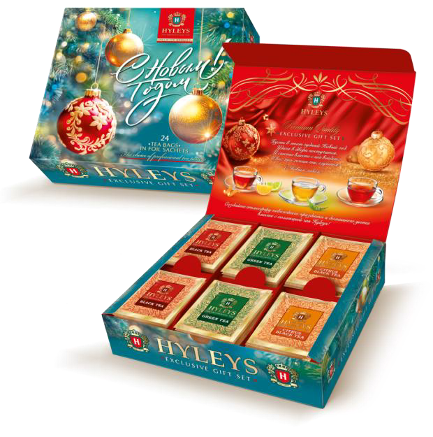 Чай ассорти Новогодний фольга 24 пак*2гр Бирюзовый фон Hyleys