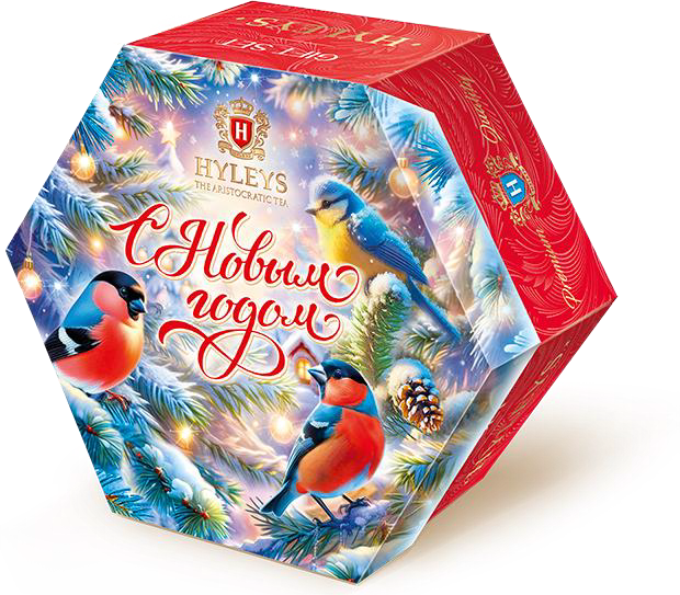 Чай ассорти Новогодний фольга 36 пак*2гр Шестигранник снегири Hyleys