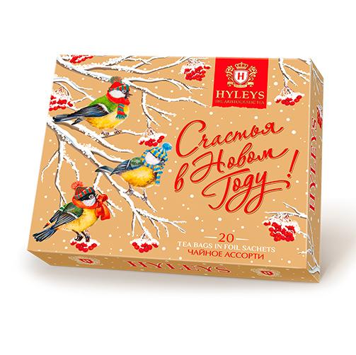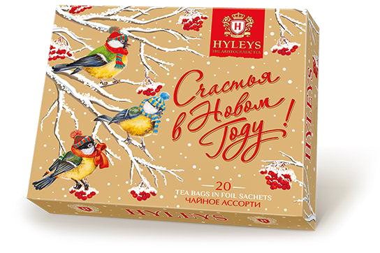 Чай черный Новогодний Птички ассорти 20пак*2гр упак картон Hyleys