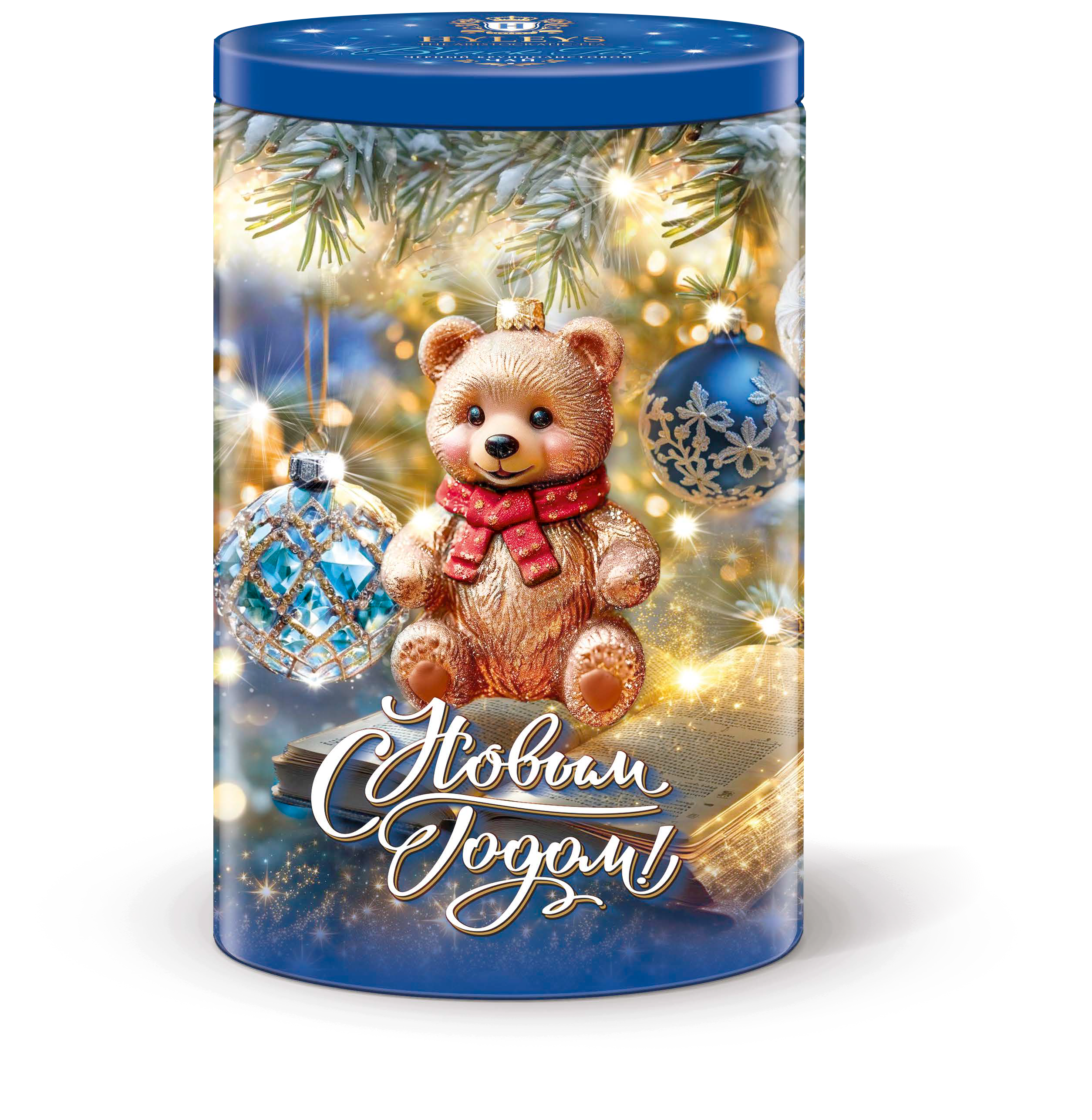 Чай Новогодний 80гр черный байховый крупнолистовой ЖБ Овал Мишка и Лошадка Hyleys