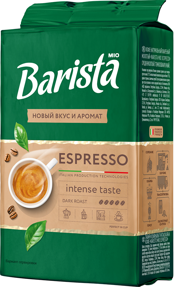 Кофе натуральный жареный молотый Barista Mio Espresso 225гр