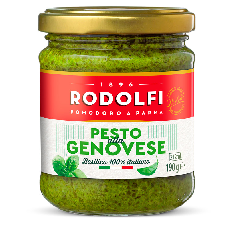 базилик 41%, подсолнечное масло 31%, вода, смесь сыров (сыры, Parmigiano Reggiano DOP (молоко)), декстроза, кешью 5%, соль, Pecorino Romano DOP (молоко), натуральный ароматизатор базилика, чеснок, кукурузный крахмал, регуляторы кислотности: лимонная кислота и молочная кислота, антиоксидант: аскорбиновая кислота.