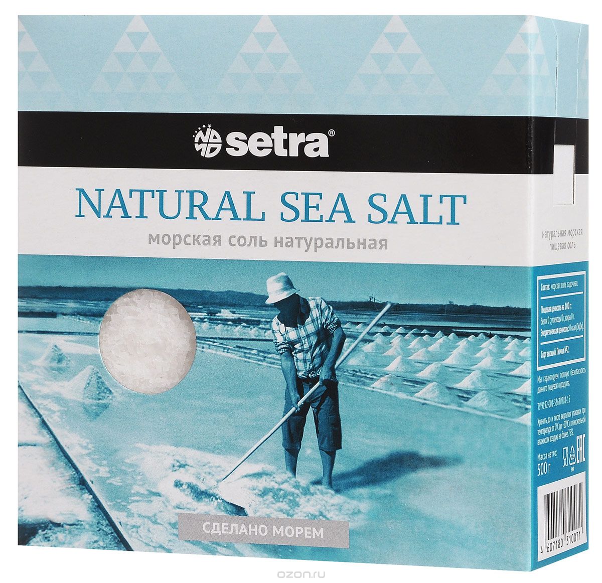 Соль морская пищевая натуральная 500гр картон упак Setra