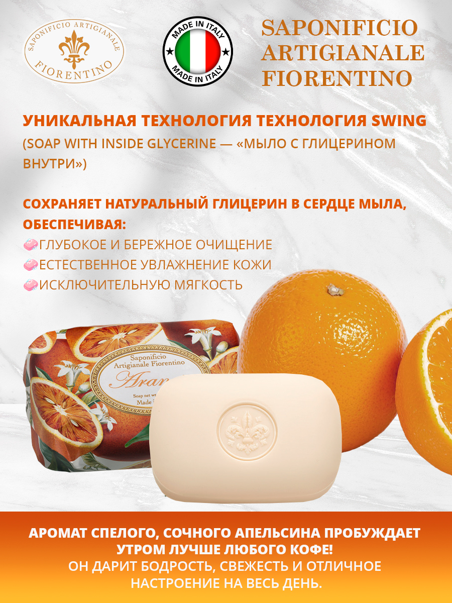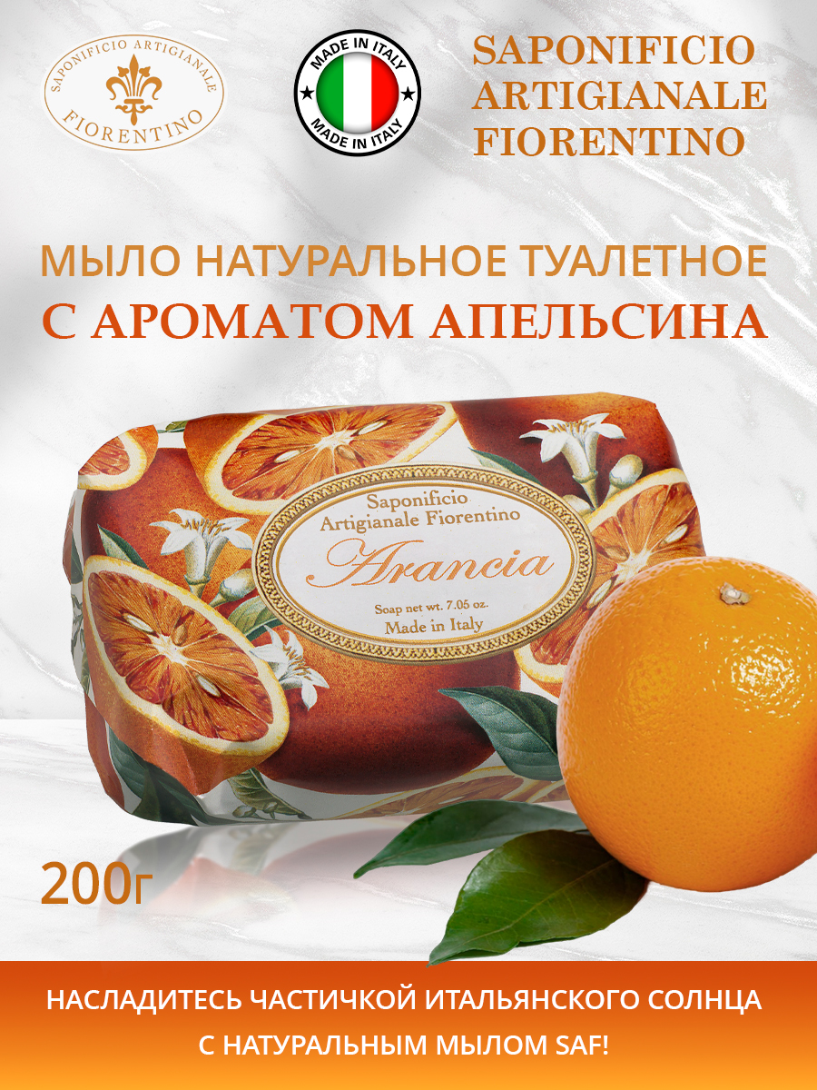 Мыло натуральное туалетное с ароматом Апельсин 200г SAF