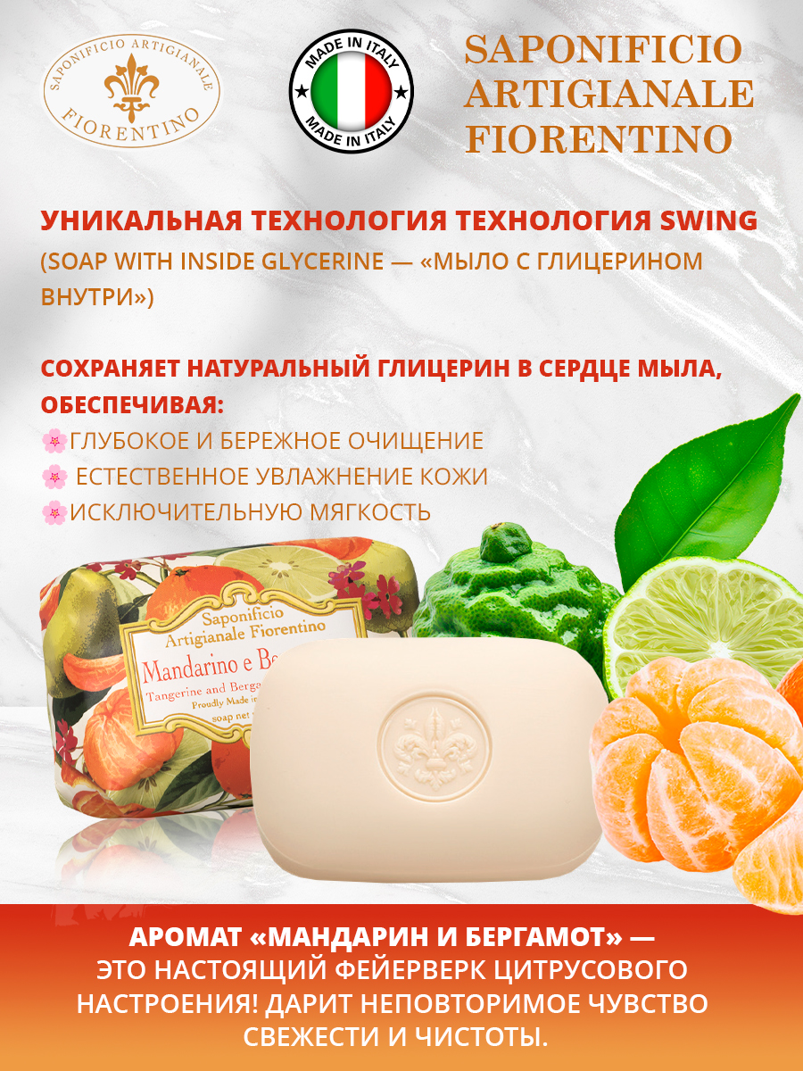 Мыло натуральное туалетное с ароматом Мандарин и Бергамот 200г SAF