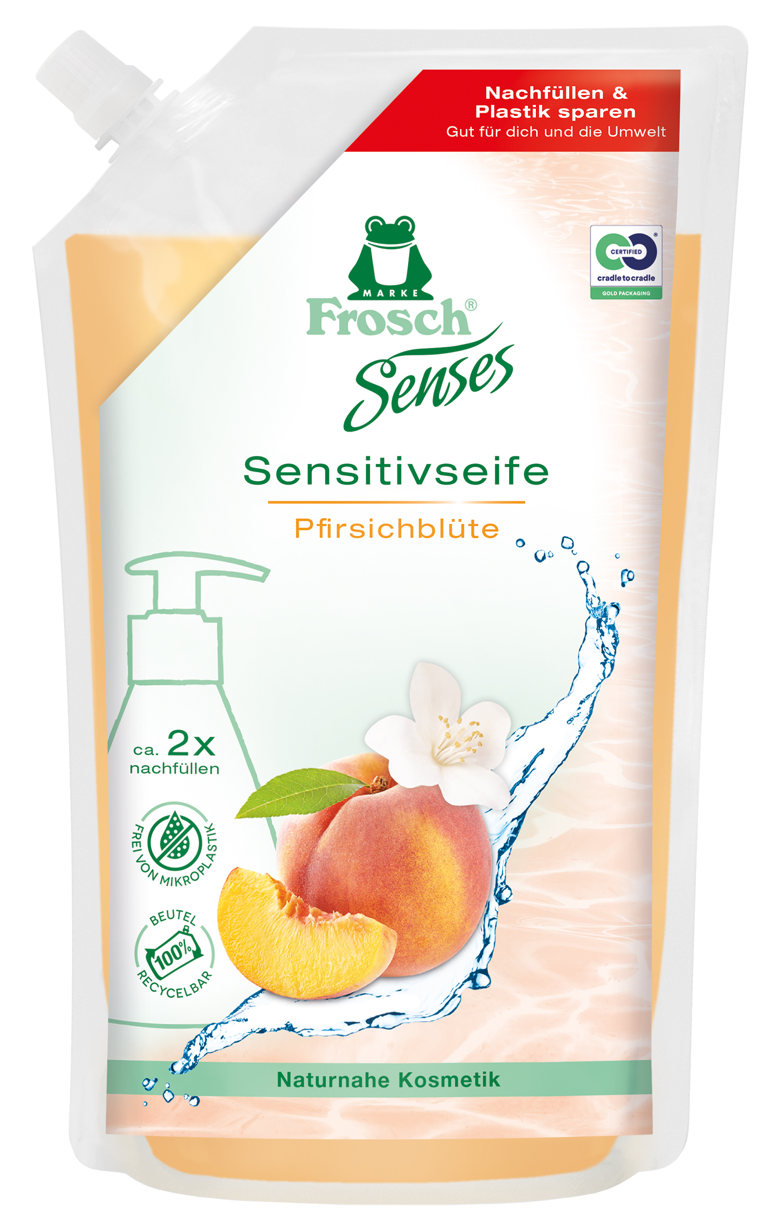 Cұйық сабын, шабдалы, 500 мл (қосымша қораптама) Frosch.