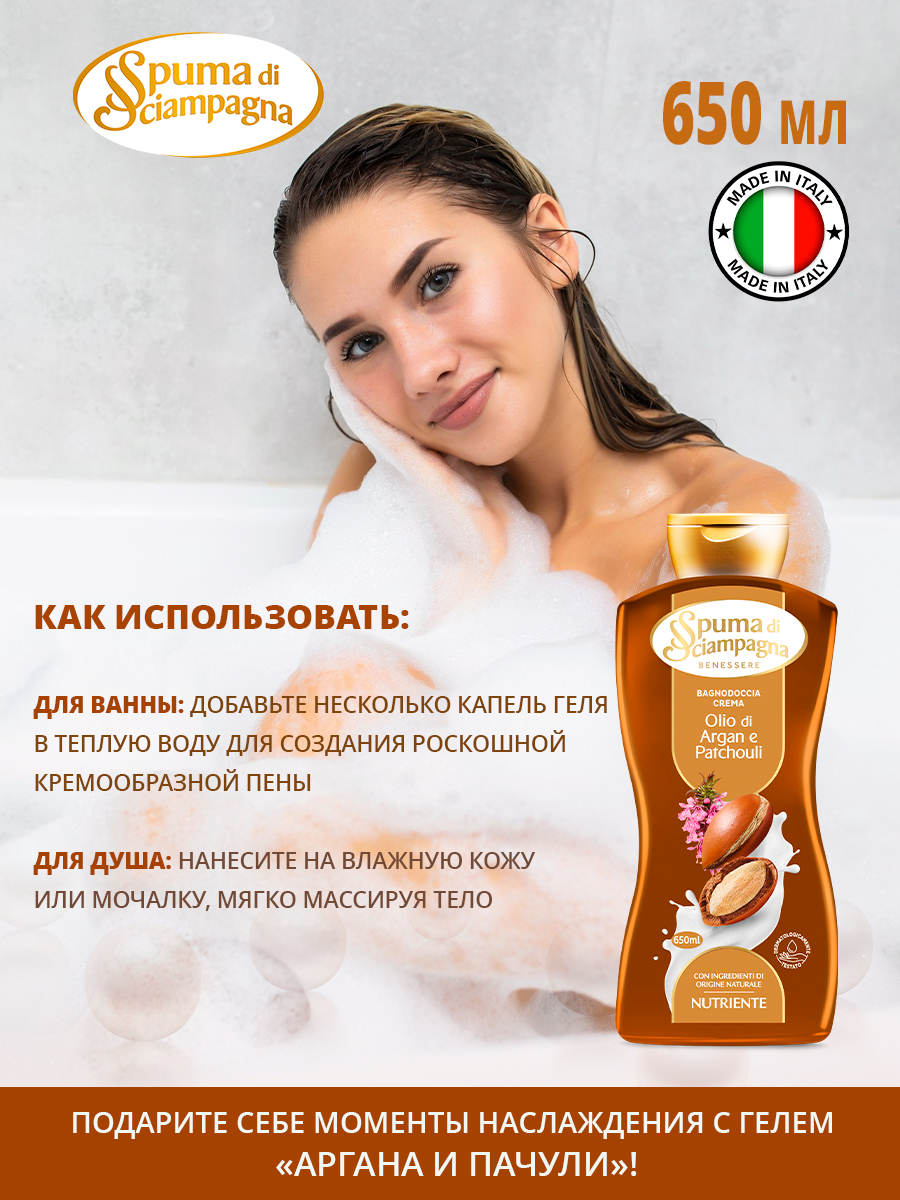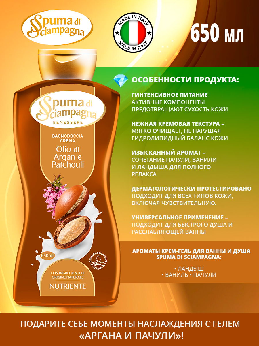 Крем-гель для ванны и душа Аргана и Пачули 650мл Spuma di Sciampagna
