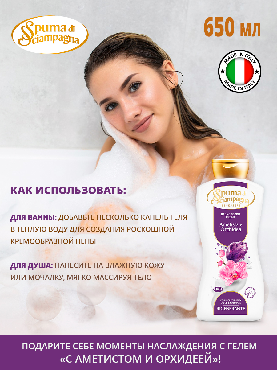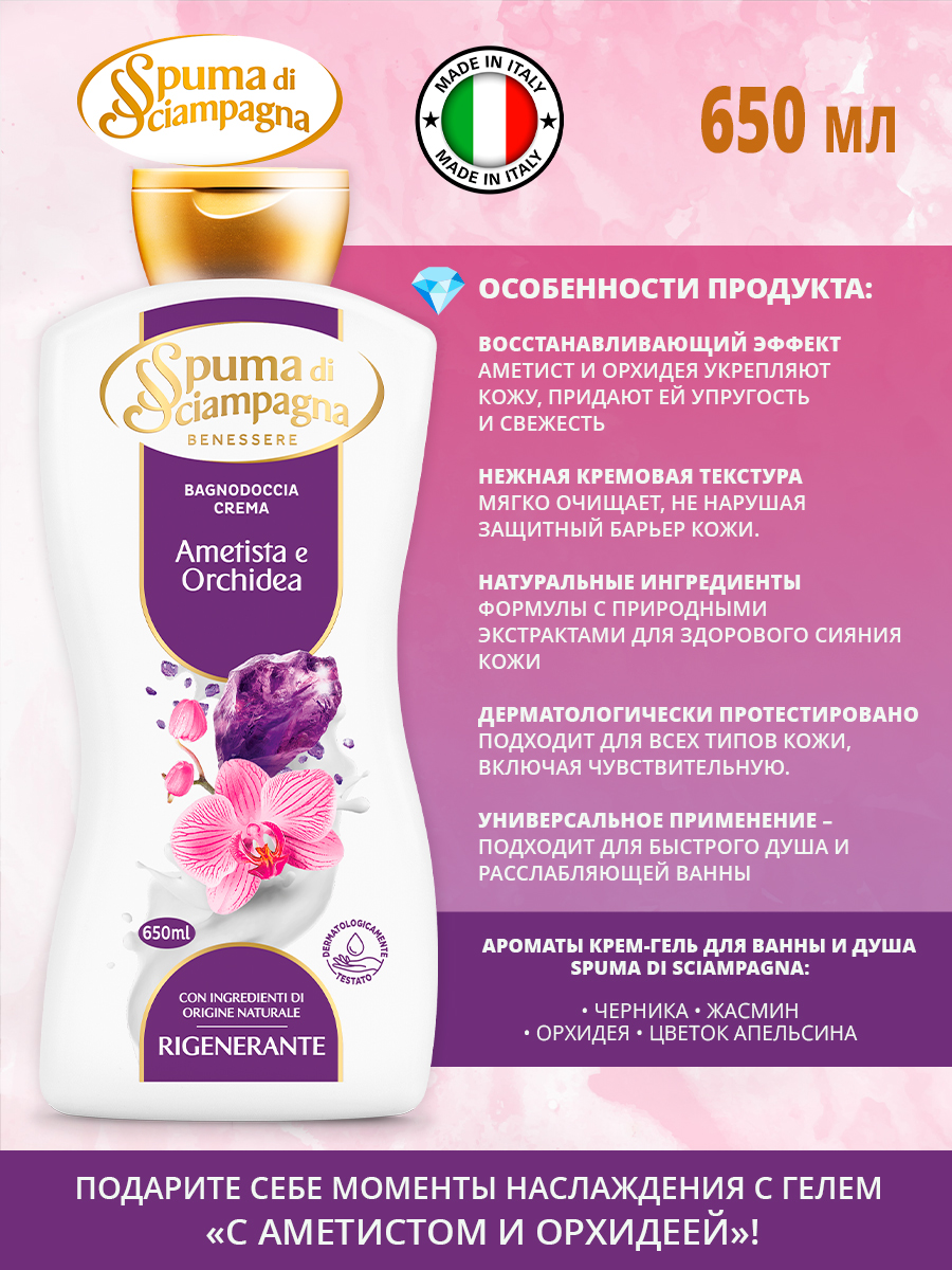 Крем-гель для ванны и душа восстанавливающий с Аметистом и Орхидеей 650мл Spuma di Sciampagna
