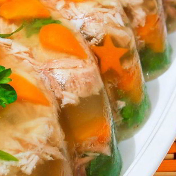 1. Желатин замочить в холодной воде, дать набухнуть, отжать, влить в подогретый бульон и готовить до полного растворения. Дать остыть. Способ приготовления указан на упаковке желатина.